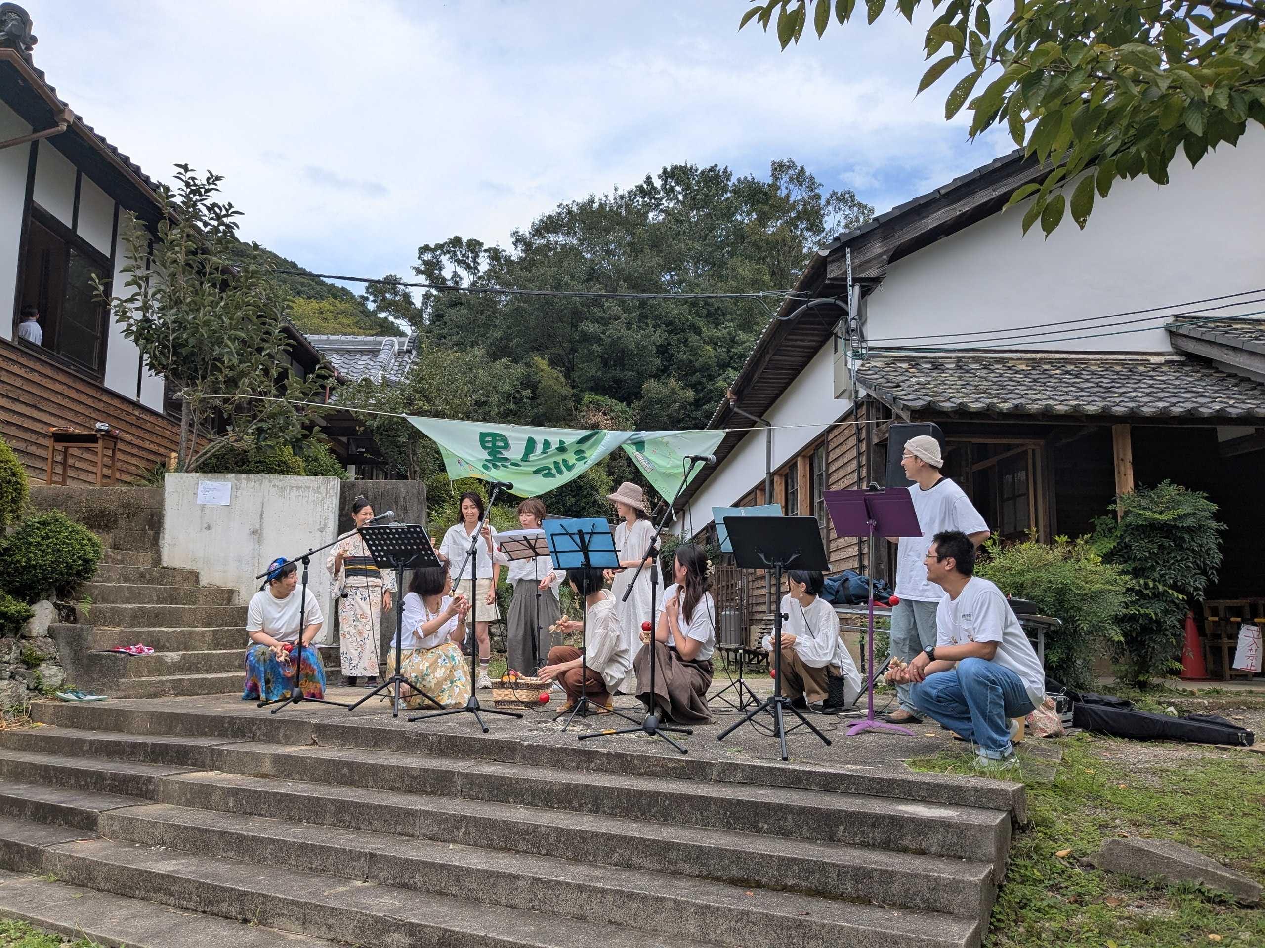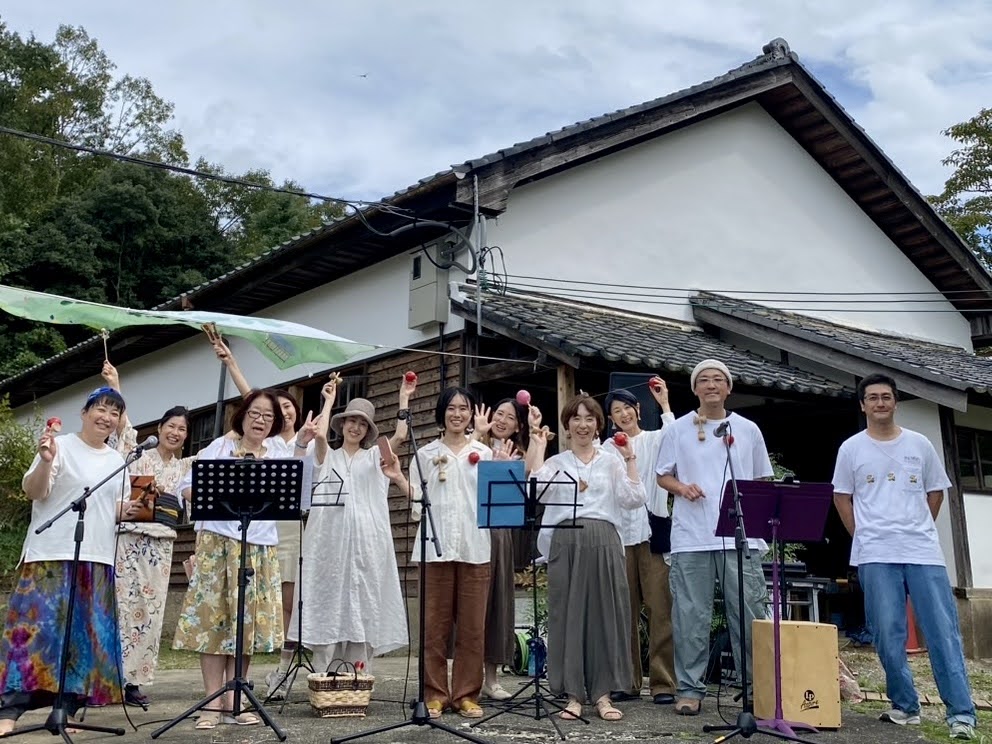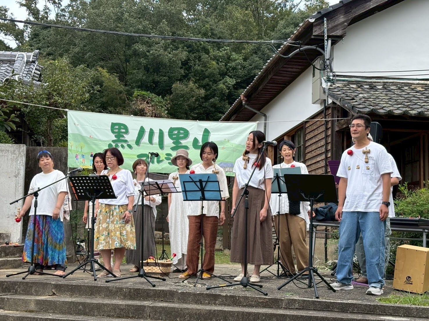 秋風の吹き始めた里山での野外ステージは、心地よい開放感の中、高揚感もあるなんとも言えない素敵であたたかい場所事前練習も木陰で輪になって声を合わせるだけで、贅沢な時間だなぁ、とこの場に参加できる喜びでいっぱいになりました。