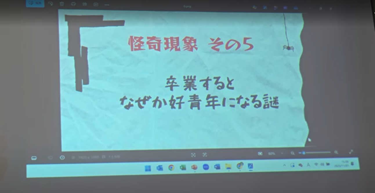 番組司会とコメンテーターに扮し、中学部で頻繁に起きていた謎の怪奇現象をたっぷり紹介してくれました。