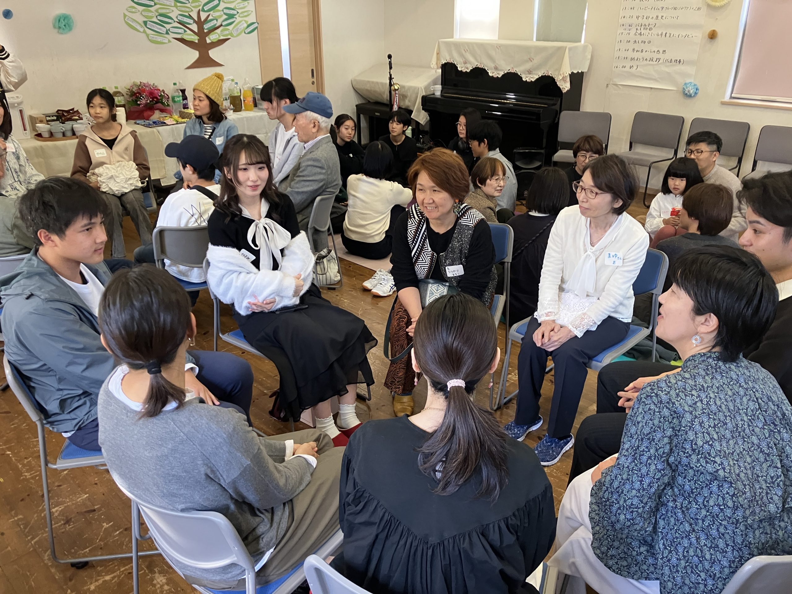 卒業生や保護者、元スタッフと、現中学生、保護者、スタッフも集まって