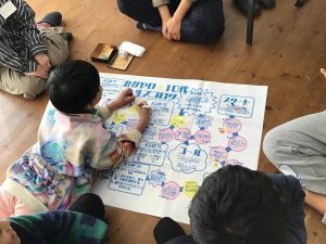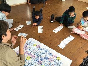 Aチームの皆さんの対話の積み重ねにより、共育プログラムが練り上げられ、実施することができました。風邪でお休みの人がいて人数は減りましたが、楽しいけれど考えを深められる素敵なプログラムでした。(Manabeeサポーター:のり)