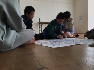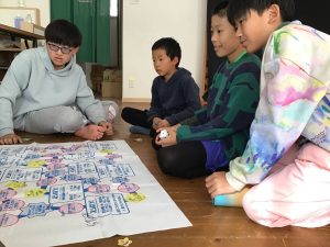 グループ3人の大人の力と子どもたちの力が結集して、すてきでエキサイティングで楽しいすごろくができた。